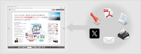 カタログ上にペンで字を書いたり気になる所にメモを貼ったり、まるで実際の本を扱っているようにご利用頂けます。さらに、SNSに配信したり、SEO対応になっているなど、Webならではの機能を搭載しています。
